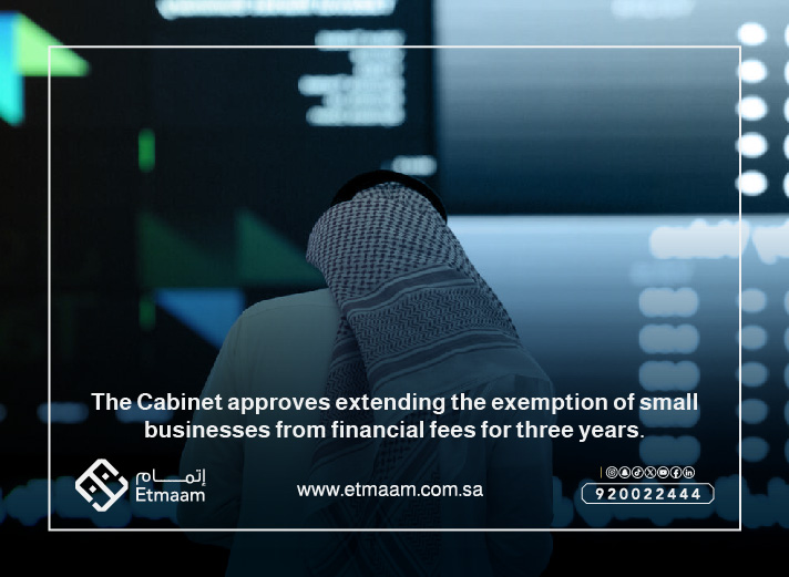 Tuesday, 10 Sha'ban 1445 - The Cabinet today approved the extension of exemption for small businesses from financial counterpart for three years. This decision comes as part of government efforts to support and enhance local economic growth, carrying with it numerous significant benefits, which we highlight as follows: