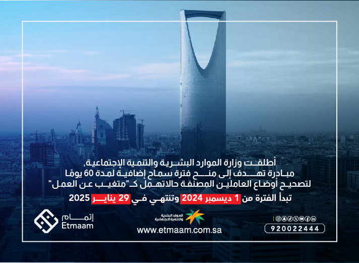 وزارة الموارد البشرية والتنمية الاجتماعية قد قامت بمنح مهلة إضافية مدتها 60 يوم لجميع العاملين المس...