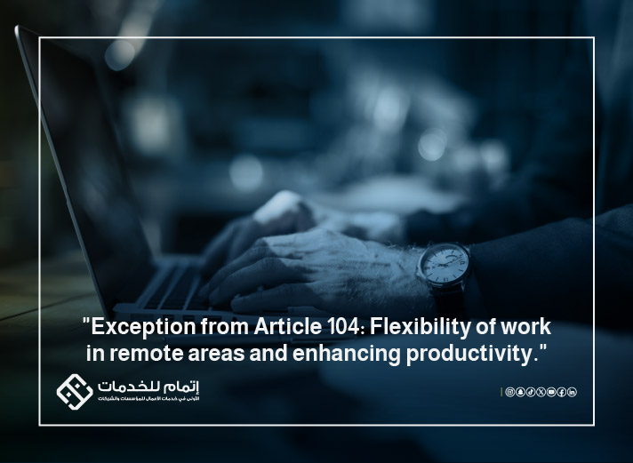The exemptions provided by Article 104 reflect the system's understanding of the nature of some sectors that require flexible work schedules. By allowing the accumulation of weekly rest periods and the continuation of work in remote areas, the system achieves a balance between workers' rights and employers' needs, contributing to a better work environment and increased productivity.Exemptions from Article 104: Adapting Work to Operational Conditions